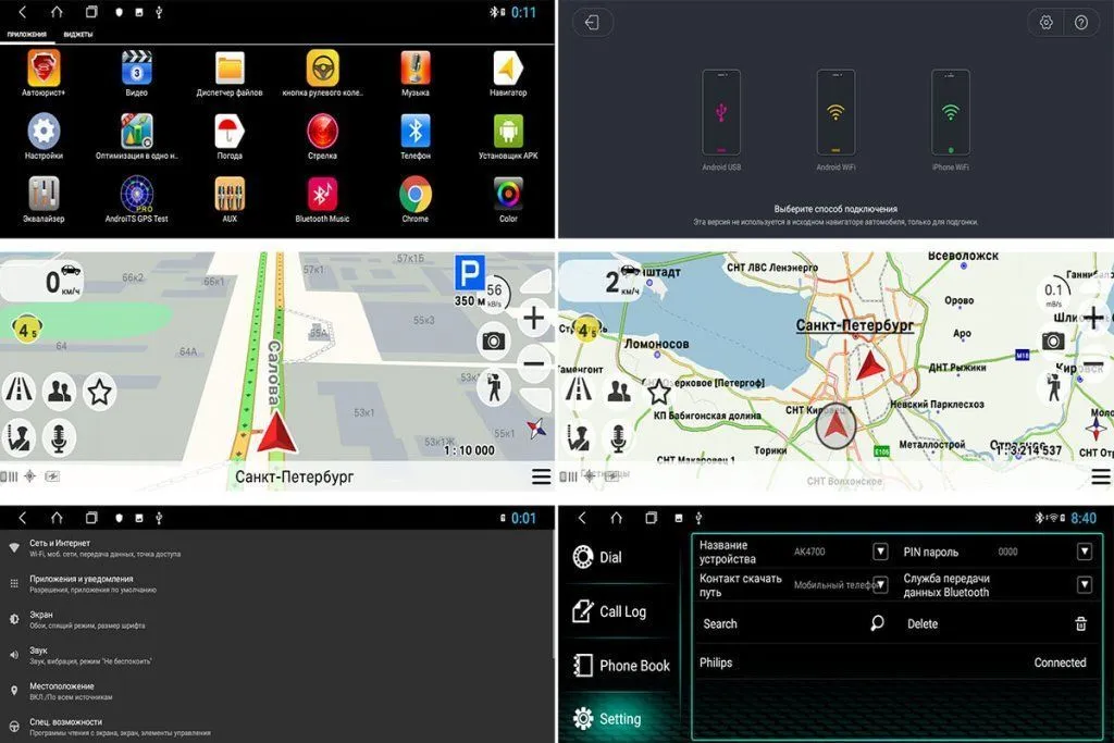 - Bluetooth OBD и TPMS. Автомагнитола может работать с двумя и более каналами передачи данных одновременно через Bluetooth. (Необходима покупка соответствующих устройств и ПО для OS Android);