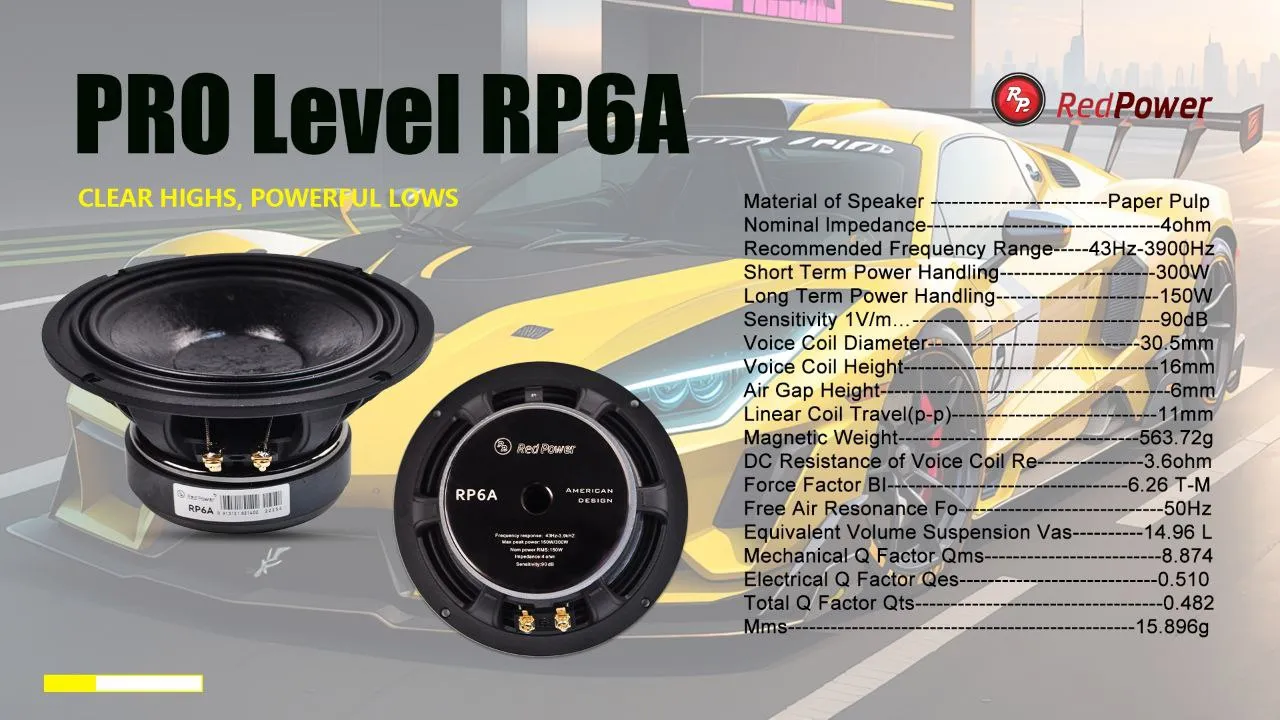 Мы взяли на себя смелость собрать комплекты для качественного звучания в аудиосистемах разного уровня. И вот, качественные динамики для тех, приобретает процессорный усилитель Redpower или сторонний или автомагнитолу Redpower серии PRO. Идеальной подойдет для усилителей небольших мощностей.