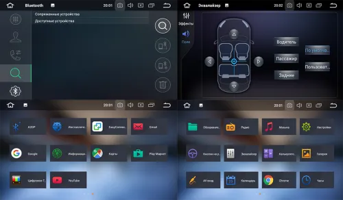 Встроенный Hands Free + передача данных. Отображение имени звонящего, Комфортный разговор при парковке. А также возможность просмотра карты навигатора. Модуль BC6 Bluetooth мультиканальный (подключение нескольких устройств одновременно). |